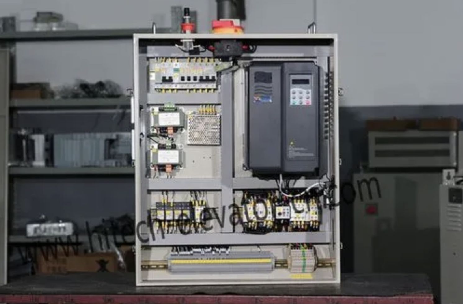 电梯控制柜:就是这个发出哐当的声音